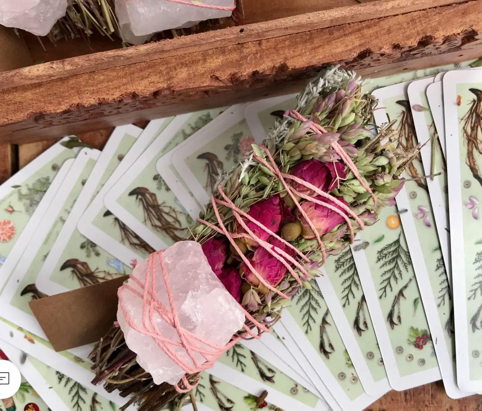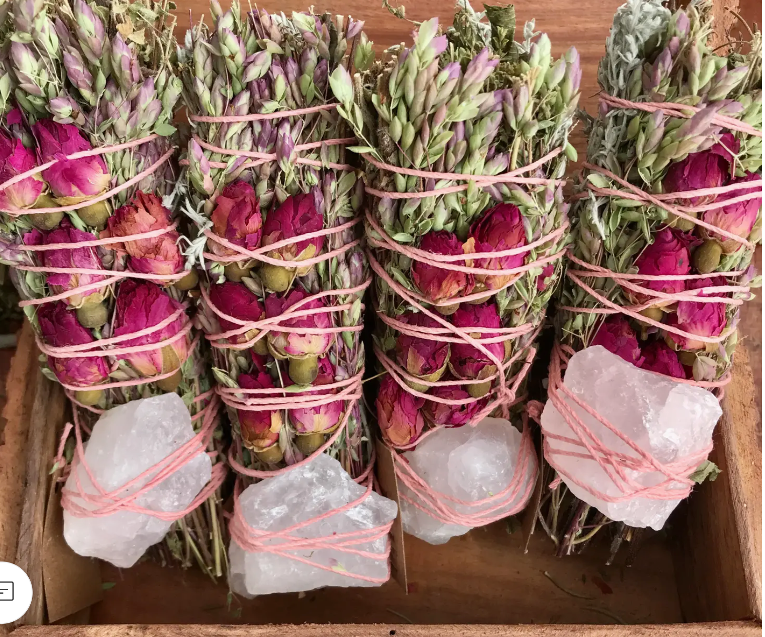 Reinvigorate your love life with this carefully curated sage, flowers, and crystals bundle.  This beautiful bundle combines Oregano, Lemon Verbena, Roses, Silver Wormwood, and a Rose Quartz gemstone.